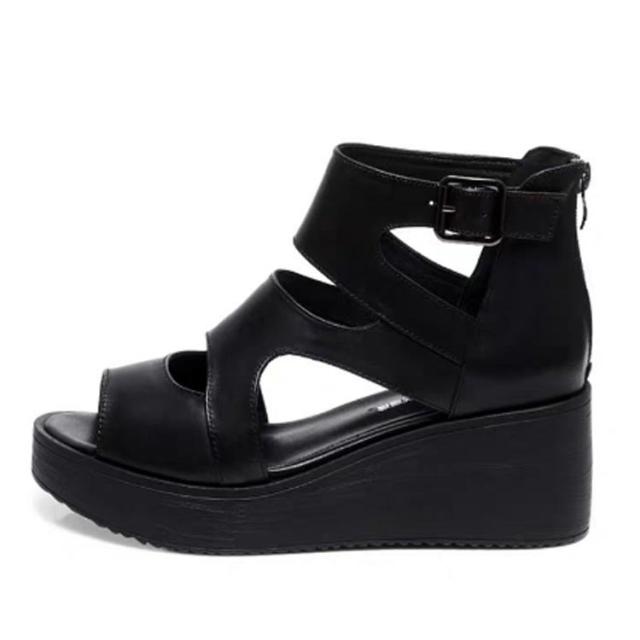 | 女性らしい印象が高まり、様々なアイテムと合わせやすいのも嬉しいポイントです。 履くだけで足長+綺麗に見える厚底ウェッジサンダル♪ 流行のブーツサンダルで大人カジュアルが楽しめます。春先から長い期間使える嬉しいアイテム♪ 1足だけで十分な存在感なうえ、履きやすくコーデを選ばないシルエット☆パンツスタイルからスカートまでいろんなコーデに合わせられる万能アイテムです♪ 夏の季節はオープントゥデザインでネイルも楽しんで頂けます。 | |