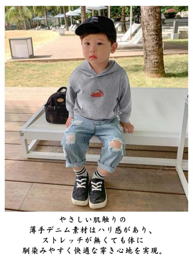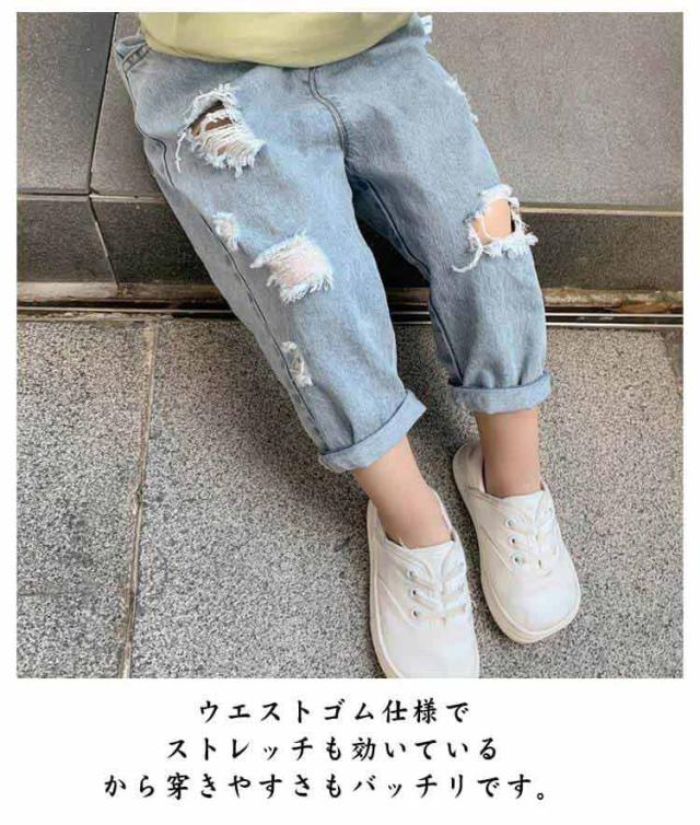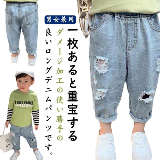 パンツ デニムパンツ ジーンズ 女の子 韓国子供服 Gパン デニム デニム ジーンズ ダメージ加工 デニムパンツ ボーイズ ジーパン 長ズボン ダメージ 男女兼用 ストレッチ 通園 無地 ロング丈 通学 ストレート かっこいい カジュアル