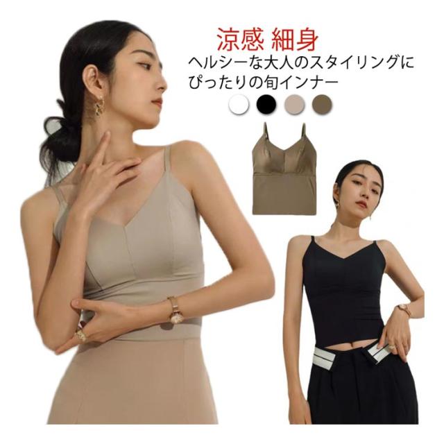 ブラトップ スーツ キャミソール キャミソールブラ レディース インナー レディース 女性 下着 カップ付き ノンワイヤー カップ付き 涼感 細身 スリム ストラップ ランジェリー ビジネス おしゃれ
