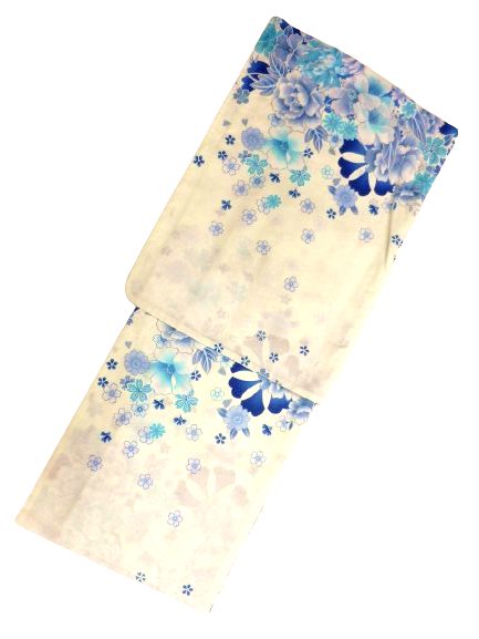 仕立て上がり浴衣 浴衣 プレタ 対応身長 155cm-168cm 変わり織 綿 白地 バラ 菊 柄 No.2424 セットにするとさらにお得!!