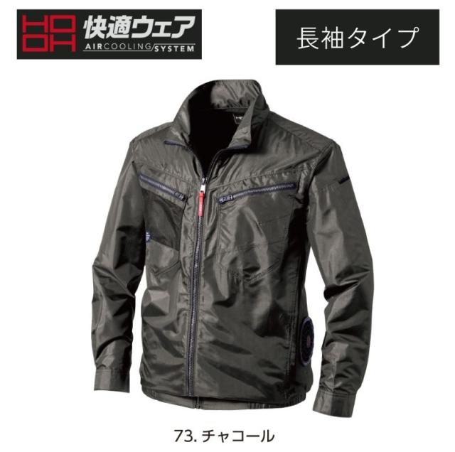 村上被服(HOOH) V7712 快適ウェア サイドファン長袖ジャケット チャコール 3L (撥水加工・UVカット・熱中症対策・2024年モデル)【バッテリ・ファン別売】