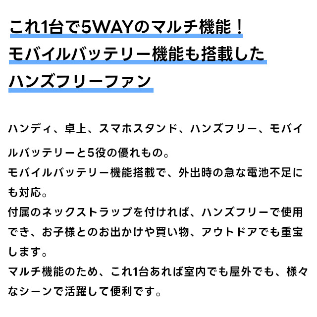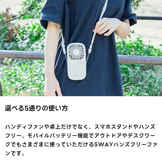 【Life on Products】ハンズフリー5wayスリムファン LCAF007【ライフオンプロダクツ モバイルバッテリー機能付き ハンディファン デスクファン 扇風機 ミニ扇風機 卓上 首掛け スマホスタンド ストラップ USBコード USB電源 ギフト 母の日 父の日 敬老の日 クリスマス Xmas】