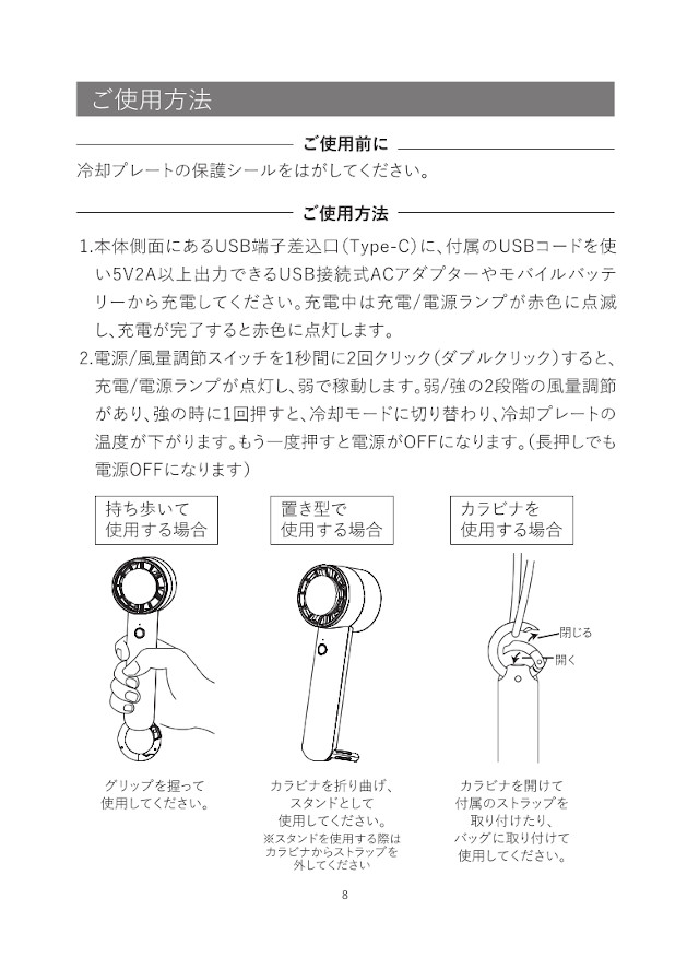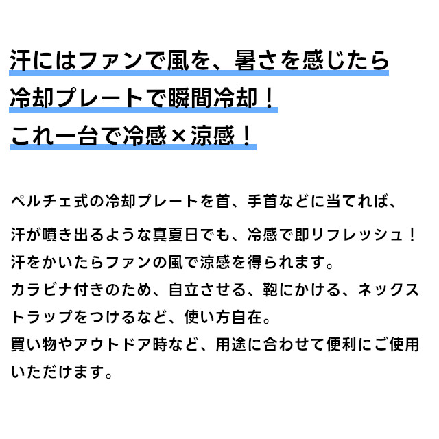 【Life on Products】ペルチェ冷却機能ハンディファン カラビナ付 LCAF004【ライフオンプロダクツ 冷感 涼感 カラビナ付き デスクファン ネックストラップ 持ち運び アウトドア コンパクト 冷却プレート 熱中症対策 ギフト 母の日 父の日 敬老の日 クリスマス Xmas】