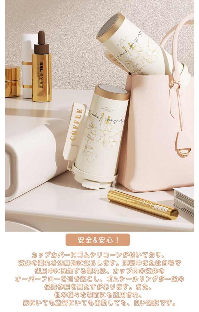 | ストロー付きのステンレスタンブラーです。 カップ内びんは環境にも、体にも優しい高品質ステンレス316で作られ、蓋は食品グレードのシリコン製、PP、完全にBPAフリーで、化学物質の悪影響を防ぎます。 2way飲み方!日常生活のさまざまなシーンに対応するために、飲み口を特別にデザインしました。ストロー付きでゆっくり吸って味わう事が出来、口紅やリップクリームを塗った女性に最適です。直飲み口も小さめなので、熱々が苦手な猫舌さんにも最適、運転の時使っても安全です。 保温&保冷!ステンレス真空断熱、飲み物の温度を保つ能力を最大限に高めています。ホッとコーヒーや冷たいドリンクなどの飲み物を入れるに最適なマグカップ。冷たい飲み物を入れても結露しない、何回も雫を拭くことは不要です。熱い飲み物を入れても、温度が内側から外側に伝わない、ご安心に使用できます。 安全&安心!カップカバーにゴムシリコーンが付いており、液体の漏れを効果的に減らします。運転中または自宅で使用中に発生する揺れは、カップ内の液体のオーバーフローを引き起こし、ゴムシールリングが一定の保護作用を果たすがあります。また、他の様々な場面にも適用され、家にいても旅行にいても出勤しても、良い選択です。 使用範囲が広い!屋外/家/オフィス/のために適したステンレス316のコーヒータンブラーで、家庭、ビジネス、旅行、出張などのシーンと遠足、釣り、登山、自転車、キャンプ、BBQなど様々なアウトドア活動に最適です! | |