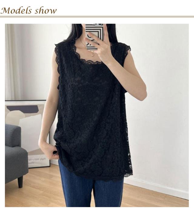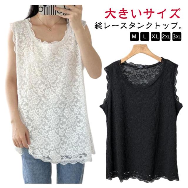 | M-3XL!総レースタンクトップ。 ゆるっとお洒落の着回し力!ゆったりタンクトップです。 レイヤードしてもごわつきにくく、いつものコーディネートにプラスするだけで、簡単におしゃれなレイヤードスタイルが完成します。 | |