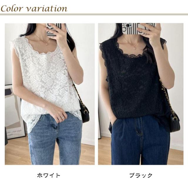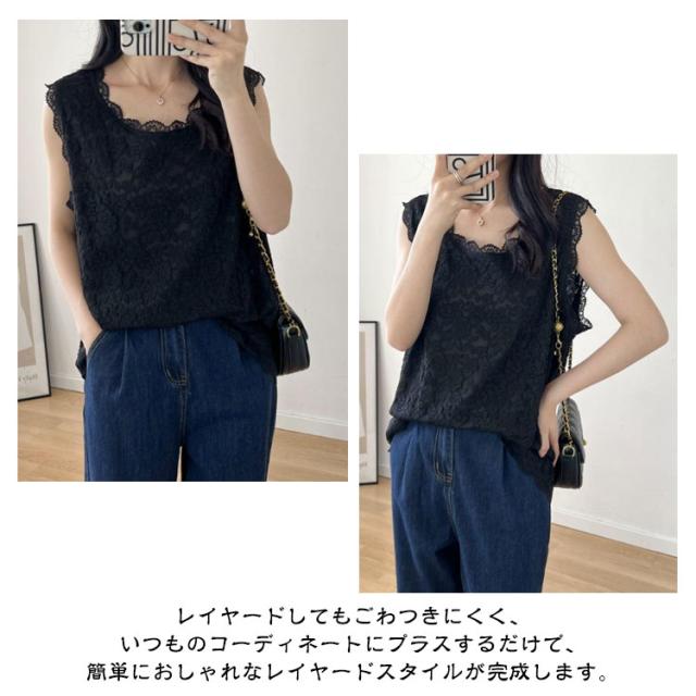 トップス 裾レース ノースリーブ ノースリーブ レディース 総レース タンクトップ 総レース 重ね着 レイヤード タンクトップ 体型カバー お尻が隠れる Tシャツ ストレッチ インナー エレガント きれいめ 大きいサイズ M-3XL