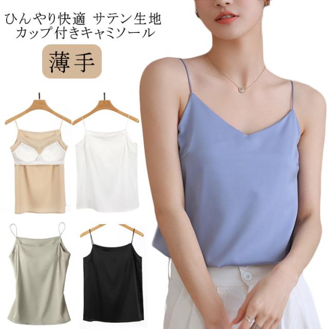 カップ付き サテン インナー Uネック キャミソール トップス 下着 カップ付きキャミソール ブラウス サテンスリップ カップ付きキャミソール オフィス 重ね着 光沢 レディース セクシー 上品 フォーマル 部屋着 ルームウェア
