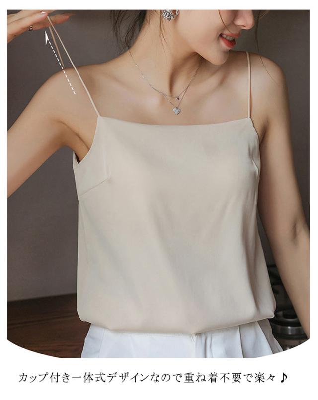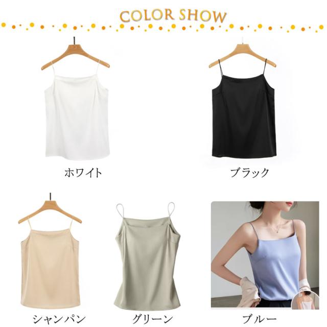 | ひんやり快適 サテン生地 カップ付きキャミソール 上質のクサテン生地を採用し、なめらかで艷やかで垂れ感が良い。 涼しいアイスシルク、軽くてフィット感と柔らかく通気性があり、夏の蒸し暑さを解消し。 カップ付き一体式デザインなので重ね着不要で楽々♪ 優れた伸縮性のある細いストラップで柔らかくてストレスフリー。 女性らしいデコルテラインも魅せられて綺麗なシルエットを演出。 | |