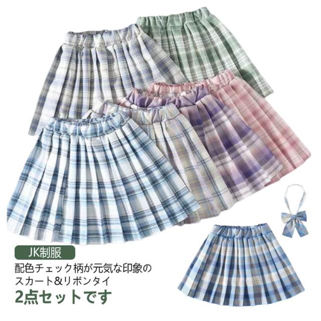 リボンタイ 制服 春夏秋 スクールスカート プリーツスカート キッズ JK制服 女の子 キッズ ミニスカート Aライン インナーパンツ付き スカパン チェック柄 ジュニア ミニスカート スカート 中学生 小学生 女子高校 ハロウィン コスプレ 入学式