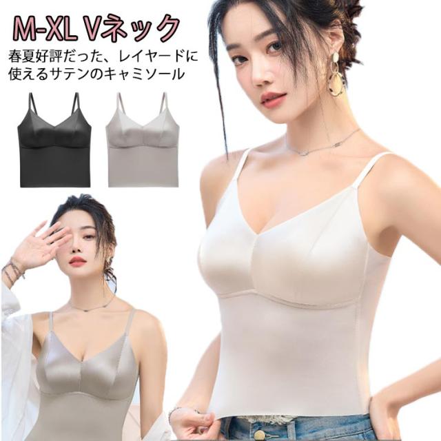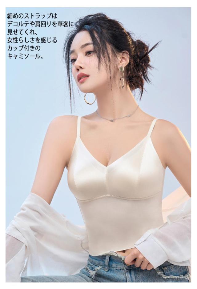 ランジェリー キャミソールブラ ブラトップ サテン キャミソール スーツ カップ付き ノンワイヤー サテンスリップ インナー トップス タンクトップ シルクタッチ ノースリーブ 下着 レディース オフィス カップ付き フォーマル ビジネス おしゃれ