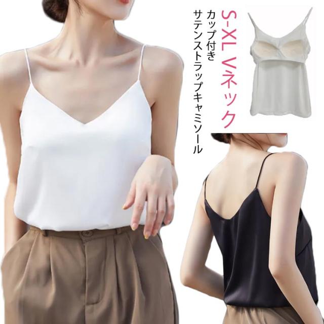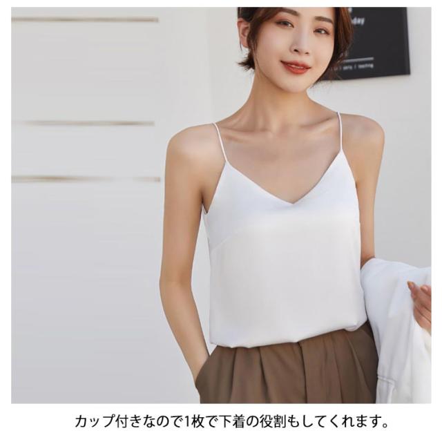 キャミソール シルクタッチ カップ付き トップス カップ付き Vネック キャミソールブラ ノンワイヤー スーツ インナー 下着 タンクトップ レディース サテンスリップ ブラトップ オフィス ノースリーブ フォーマル ビジネス おしゃれ