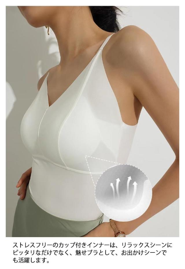 ノンワイヤー 涼感 キャミソール キャミソールブラ カップ付き 女性 下着 インナー カップ付き ブラキャミ スーツ レディース レディース 細身 スリム ストラップ ランジェリー ビジネス おしゃれ