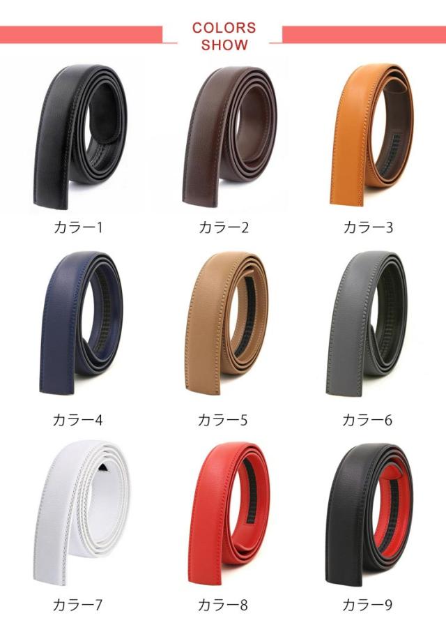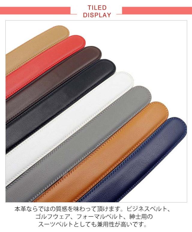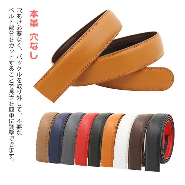 ベルト バックルなし ゴルフ メンズ ベルトのみ 35mm 本革 穴なし 帯のみ 革のみ 交換用 替えベルト ベルト革のみ 無段階 オートロック ワンタッチ ズボン用 ゴルフ用 大きいサイズ 革 黒 茶色 オレンジ 130