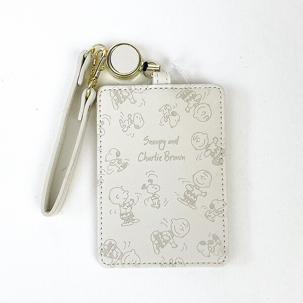 リール付きなので、通勤通学にとっても便利。カバンに付けたまま改札を通れちゃいます。裏面にポケット2つ付いています。スヌーピーのエンボスレザー風で大人可愛い♪