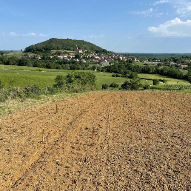 Saint-Lothain(サン・ロタン村)に位置する自社畑「L’echenaud(レシュノー)」の畑。土壌は石灰岩の破片が混ざった粘土泥灰土。樽発酵、樽熟成(23ヶ月・古樽のみ)、生産本数はわずか140本。品種はシャルドネ90%、サヴァニャン10%。樽熟成時は補酒を行うウイエのスタイルで産膜酵母なし。