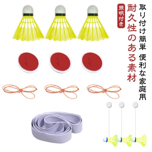 | サイズについての説明 | サイズ:セット内容:3個バドミントン、40個*弾性ロープ、3個*粘着フック、3個*ロープ。 ※サイズ計測には誤差が生じます。 |