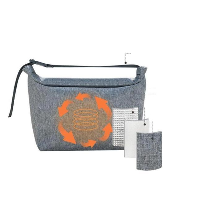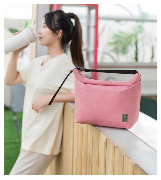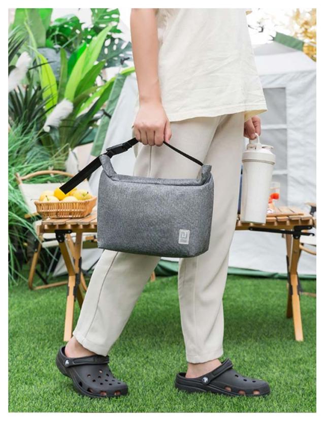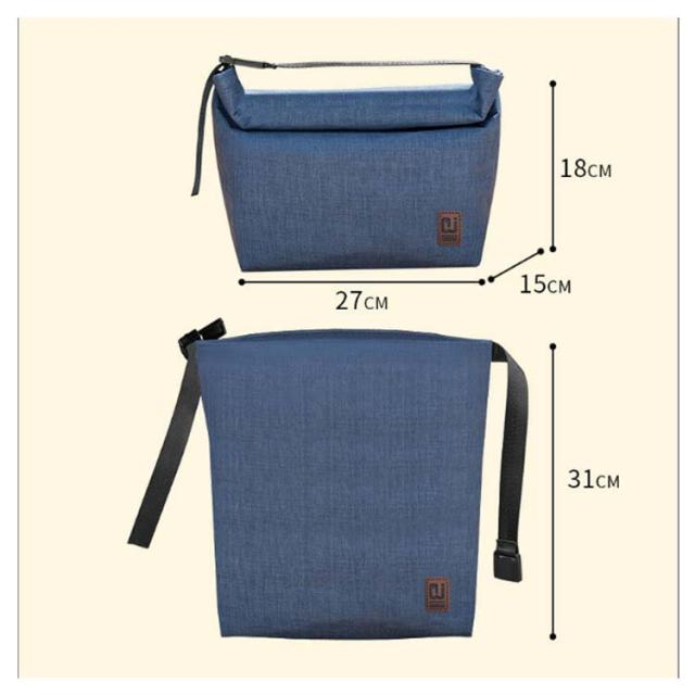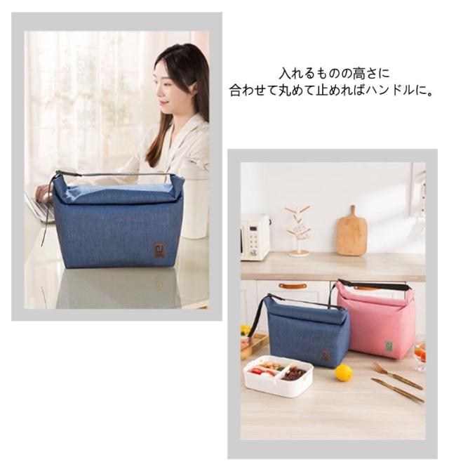 | 持ち運びにぴったりなクーラーランチバッグ。 入れるものの高さに合わせて丸めて止めればハンドルに。 お弁当以外にも、買い出しや差し入れにも便利なポーチです。 内側は保冷シート生地を使用しており、水滴などで汚れたらバックを裏返して拭き取りが可能。 シートは薄いのでかさばらず、コンパクトに畳めます。 | |