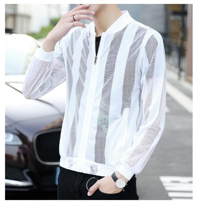 涼しい UV対策 メンズ 日焼け対策 ストライプ メッシュジャケット 速乾 ブルゾン サマージャケット UVパーカー メッシュジャケット 冷房対策 ライトアウター 大きサイズ 春