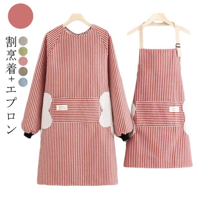 かっぽう着 割烹着 割烹 敬老の日ギフト 母の日 着 かっぽう着 エプロン ストライプ柄 母の日 割烹着+エプロン 2枚 エプロン 手拭き 実用的 割烹着 エプロン ロング丈 割烹着 ギフト オシャレ かわいい 割烹着 綿割烹着 ロング割烹着 プレゼント