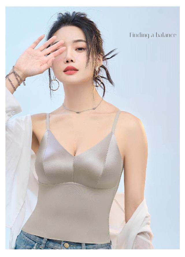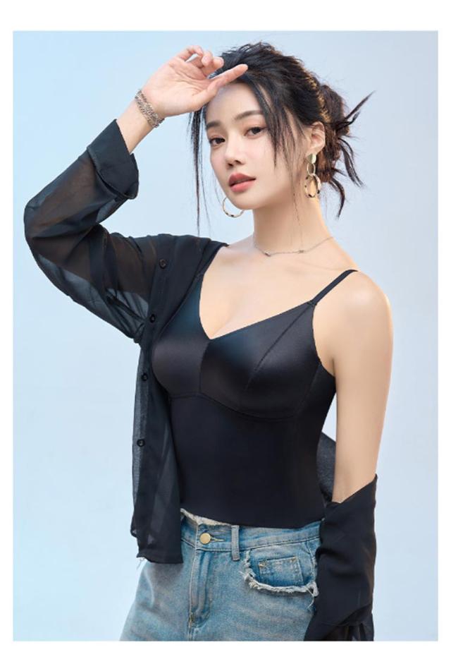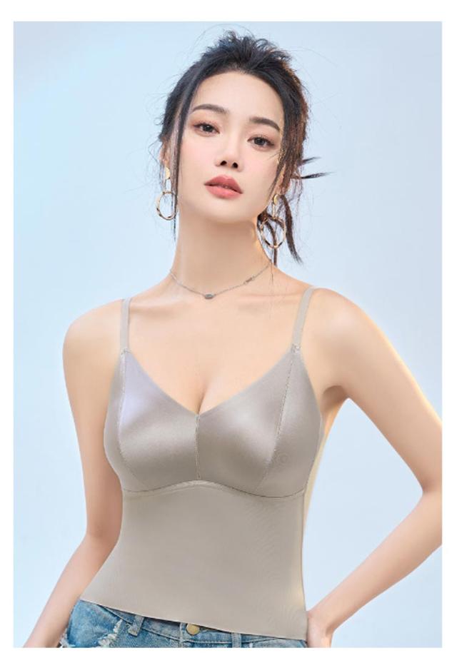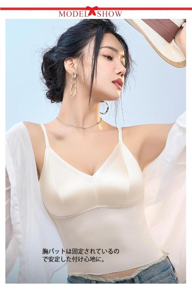 ブラトップ Vネック キャミソールブラ キャミソール サテン シルクタッチ オフィス タンクトップ スーツ インナー ノンワイヤー カップ付き カップ付き サテンスリップ ランジェリー レディース トップス ノースリーブ フォーマル ビジネス おしゃれ
