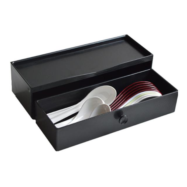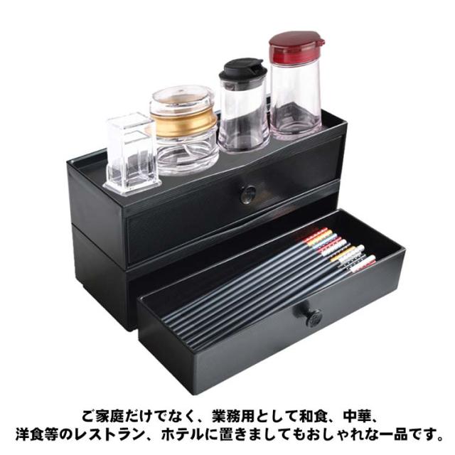 | レストランや飲食店におすすめの箸箱、カトラリーケースです!【2個セット】 重ねたり、縦や横向きに並べたり、自由に組み合わせてお使いいただけます。 引き出し式で取り出しやすく収納できます。 ケース上部にはちょっとした小物を置くスペースあり! ご家庭だけでなく、業務用として和食、中華、洋食等のレストラン、ホテルに置きましてもおしゃれな一品です。 | |