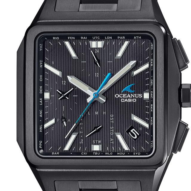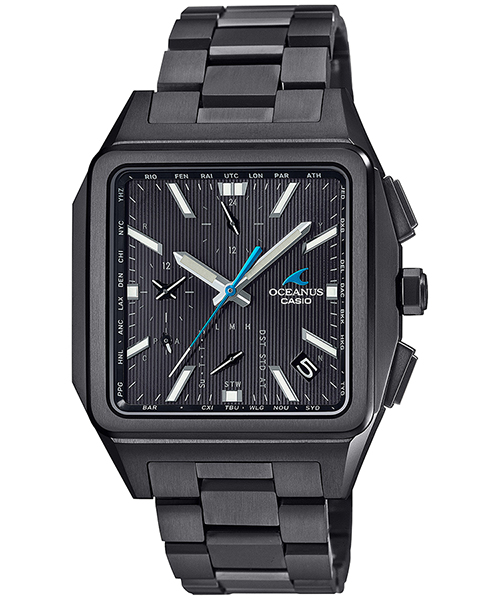 “Elegance, Technology”をブランドコンセプトに、先進のテクノロジーとスポーティデザインを併せ持つOCEANUSのクラシックラインから、ソリッドなイメージの角型ケースが特徴的な電波ソーラーモデルです。