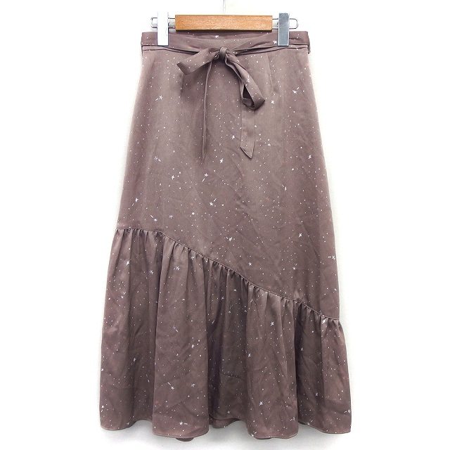 【中古】ビーラディエンス BE RADIANCE マーメイドスカート フレア ロング ミモレ丈 アシンメトリー 星柄 リボン