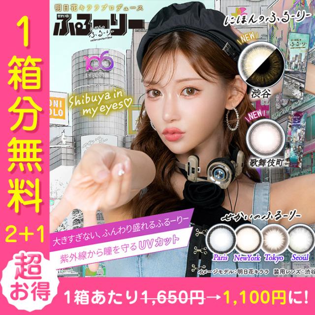 【1箱分無料!3箱セット】カラコン ワンデー 度あり 明日花キララ せかい(世界)のフルーリー Flully UV 1箱10枚入り 直径14.2mm BC8.6 低含水 ハーフ系 大人可愛い 高度数 ハイパワー フチあり ブラウン ブルー オリーブ