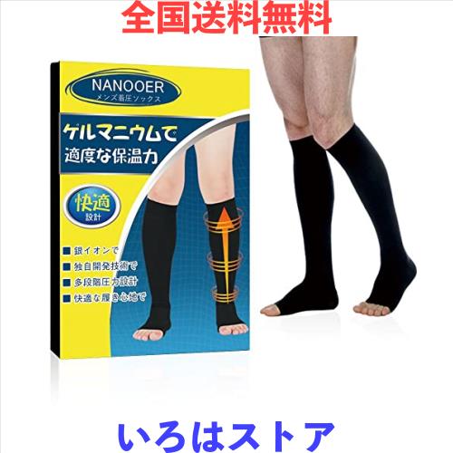 サイズ: L-XL◆商品名:[NANOOER] 1足組 着圧ソックス メンズ 靴下 ハイソックス 加圧 段階着圧 弾性ストッキング 男性用 つま先なし オープンタイプ スポーツ