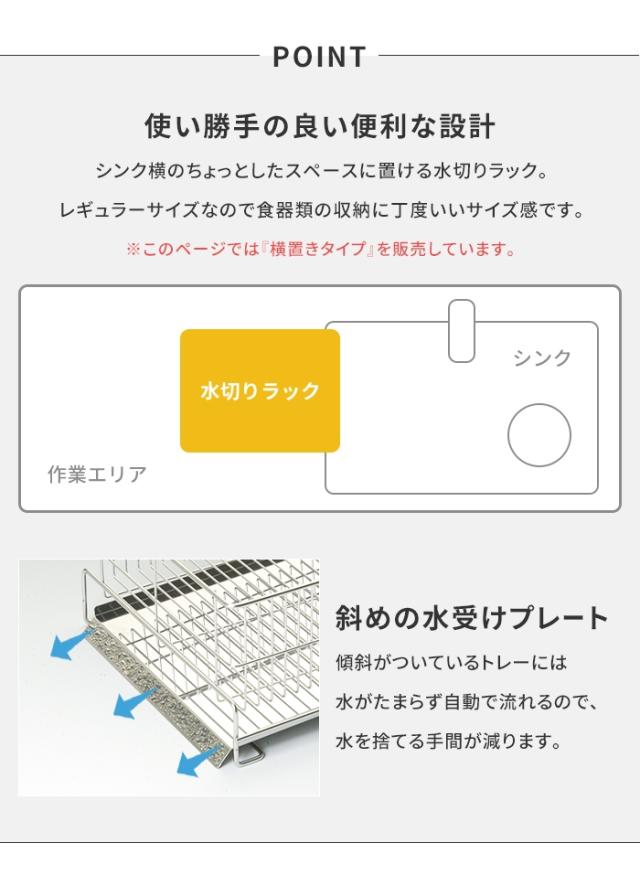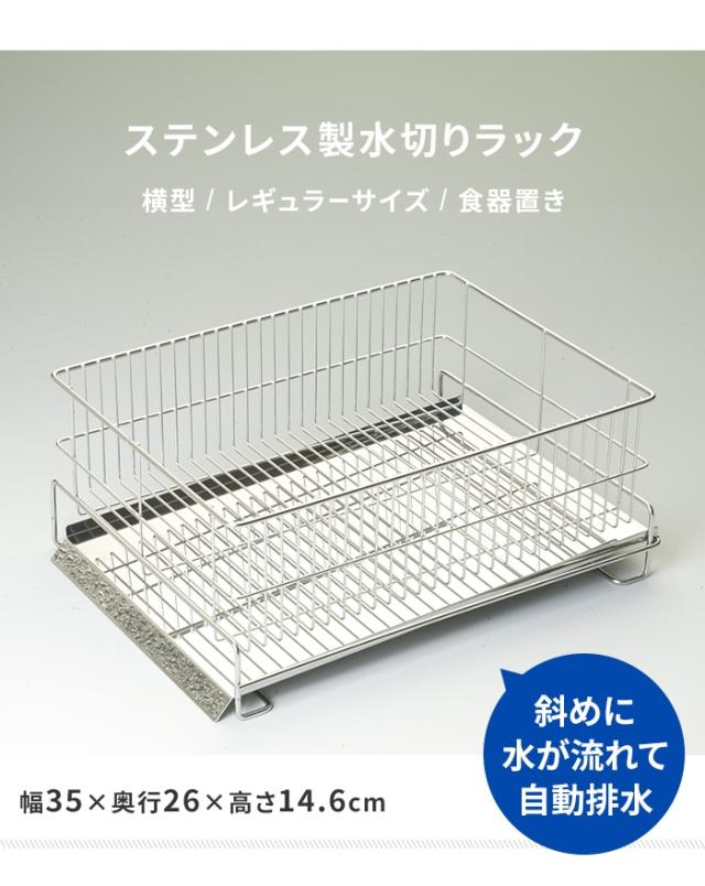 水切りラック 横置き シンク上 ステンレス製 幅35cm 水切りカゴ トレー付き シンプル 衛生的 日本製 キッチン収納 台所収納