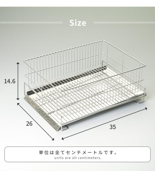 | [水切りラック本体]幅35×奥行26×高さ14.6cm [トレー]幅37×奥行24.5×高さ2cm |