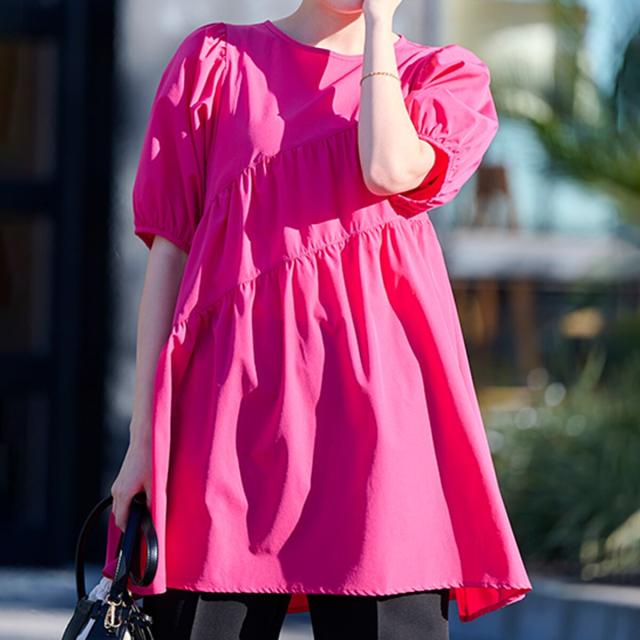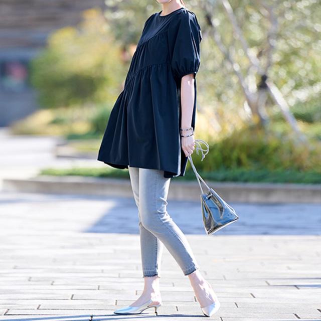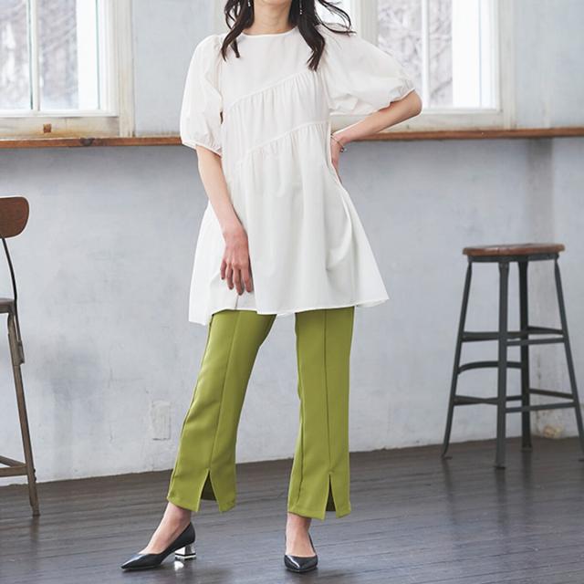 ・ふんわりシルエットや斜めに入ったティアードデザインで着痩せ効果も◎な才色兼備なチュニック。