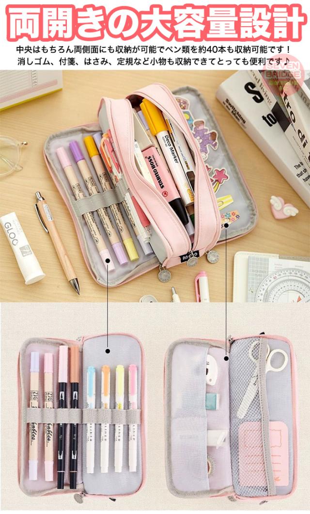 筆箱 ペンケース 大容量 両面開き 文具 筆入れ 化粧ポーチ 女子 男子 スリム コンパクト 高校生 中学生 小学生 多機能 h0569