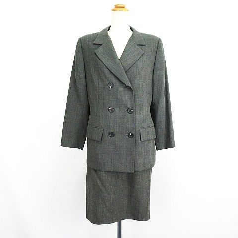 【中古】アンタイトル セットアップ スカートスーツ 長袖 ダブル ひざ丈 タイト 9 グレー ※EKM レディース