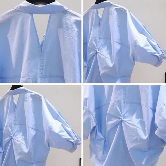 ブラウス 半袖 レディース シャツ トップス 切替 カットソー 重ね着 流行り 通勤 春夏 Tシャツ 柔らかい チュニック ふわっと 送料無料