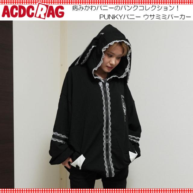 ACDC RAG エーシーディーシーラグ PUNKYバニー ウサミミパーカー 長袖 原宿 原宿系 ファッション うさぎ 病み 病みかわ 地雷 ブラック/ホワイト jr-535-127