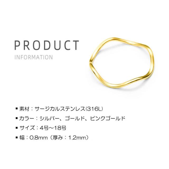 リング 指輪 0.8mm 波型 ステンレスリング ペアリング ジュエリー 男女兼用 アクセサリー サージカルステンレス 316 金属アレルギー対応