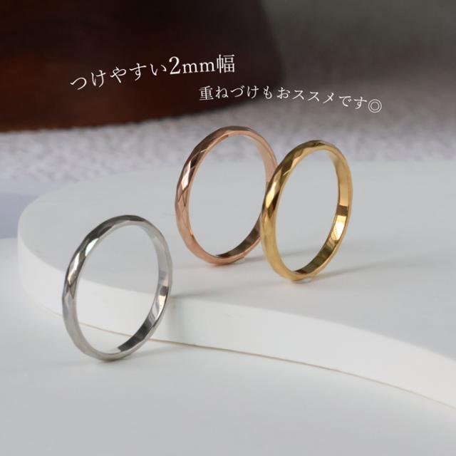 リング 指輪 ダイヤカット 2mm ステンレス 3~25号 安心素材 大人可愛い ジュエリー 金属アレルギー ピンキーリング ファランジリング