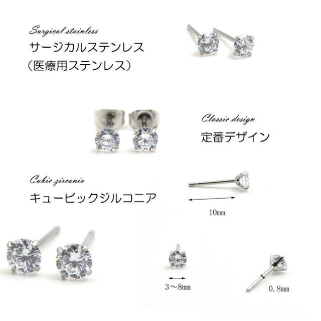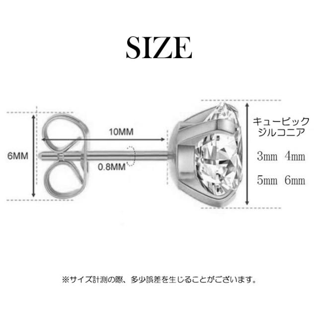 | サイズ | キュービックジルコニア:3〜6mm,ポスト長さ:10mm、太さ:0.8mm |