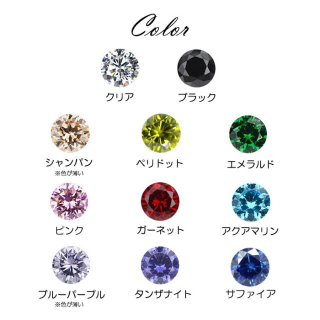 | カラー | クリア、ブラック、シャンパン、ペリドット、エメラルド、ピンク、ガーネット、アクアマリン、ブルーパープル、タンザナイト、サファイア ※パソコンやモニタによって、若干色合いが異なることがございます。 入荷時期により、多少色味に差異がございます。 |
