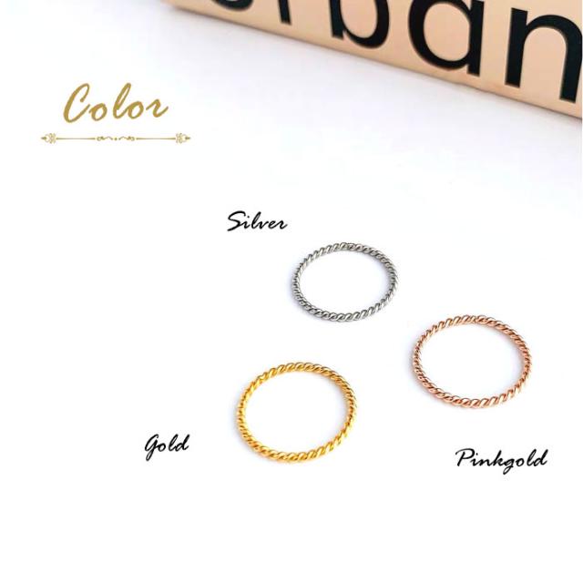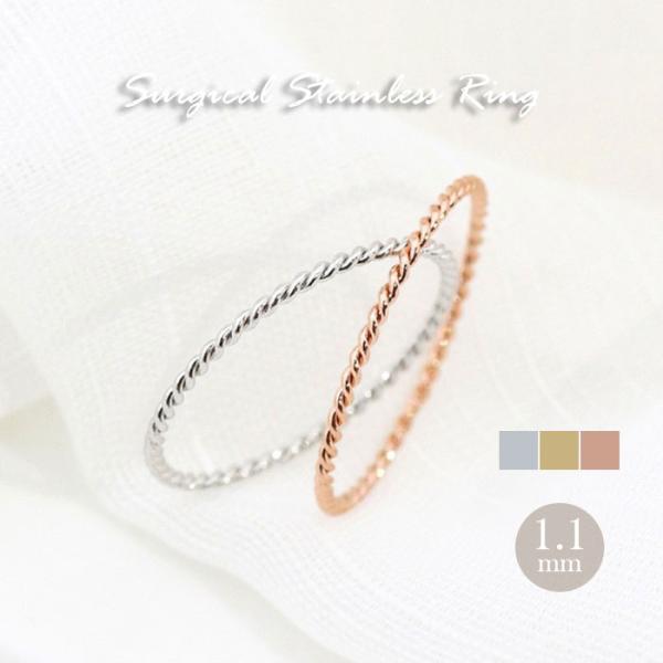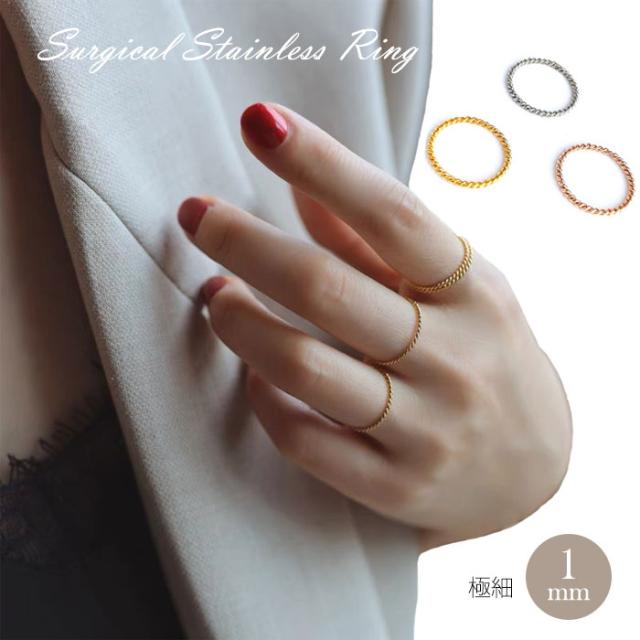 リング 指輪 ツイスト 1.1mm 極細 華奢リング ステンレスリング 安心素材 大人可愛い ジュエリー 金属アレルギー ピンキーリング ファランジリング