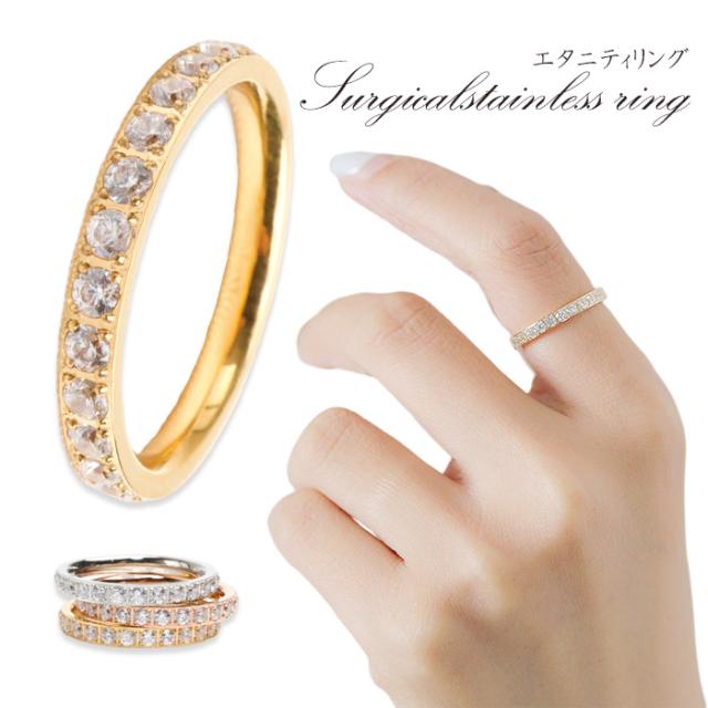 リング 指輪 フルエタニティ サージカルステンレス CZダイヤ キュービックジルコニア ペアリング マリッジリング 大人可愛い ジュエリー