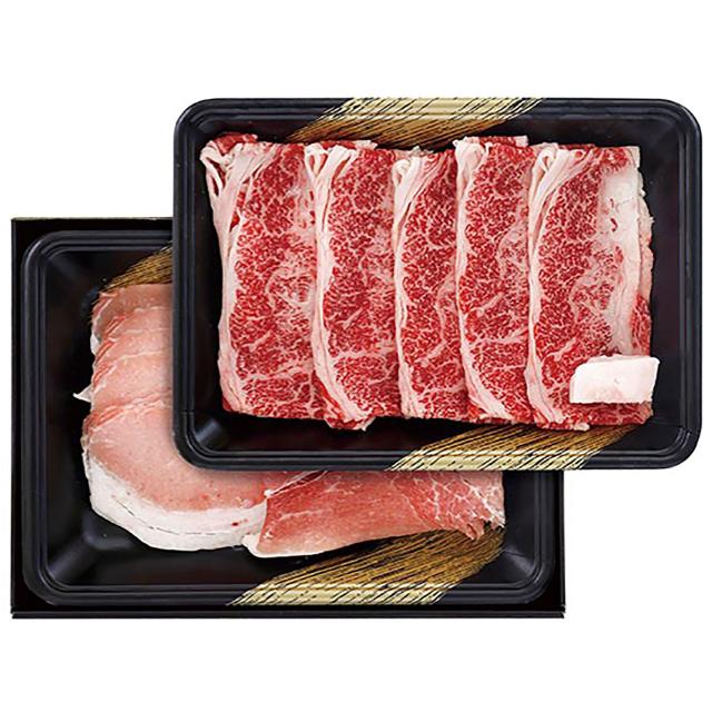 国産の黒毛和牛と九州産の黒豚を一度に楽しめるすきやき肉の食べくらべセットです。