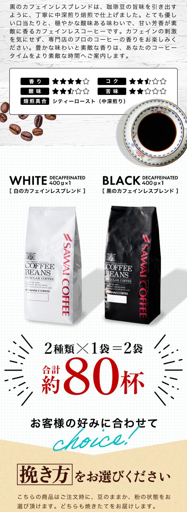 | 商品名 | 白と黒の本格焙煎カフェインレスコーヒー80杯分 澤井珈琲 |