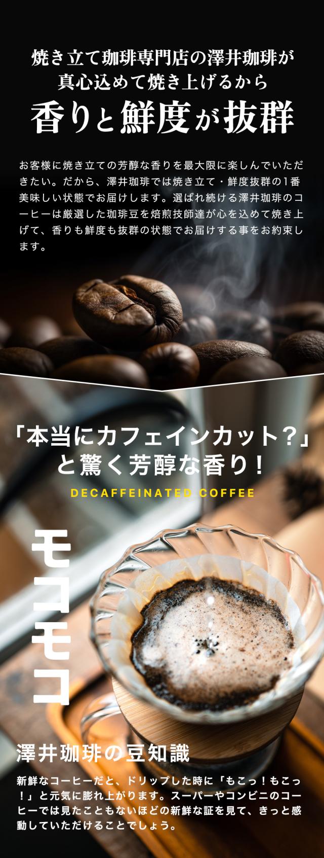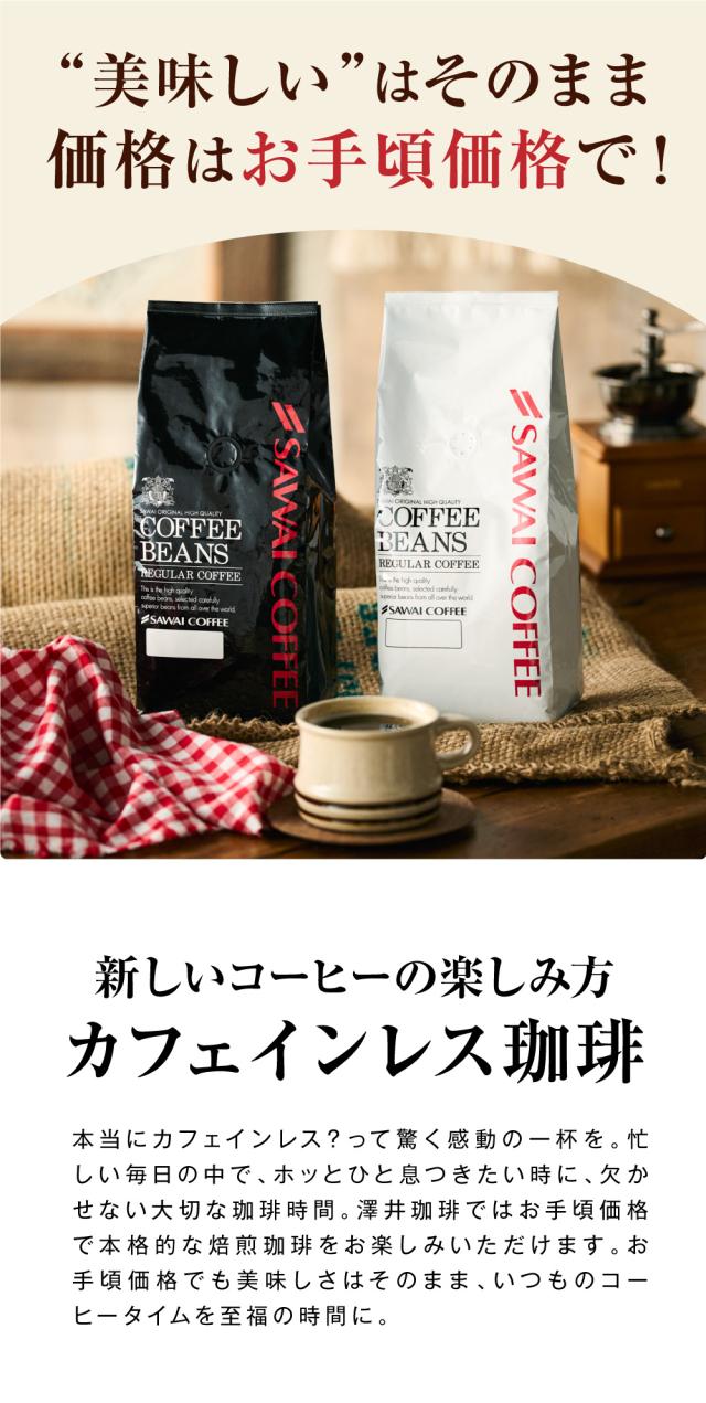 焼きたて珈琲専門店の澤井珈琲の香りと鮮度抜群のカフェインレスコーヒー豆800gです。