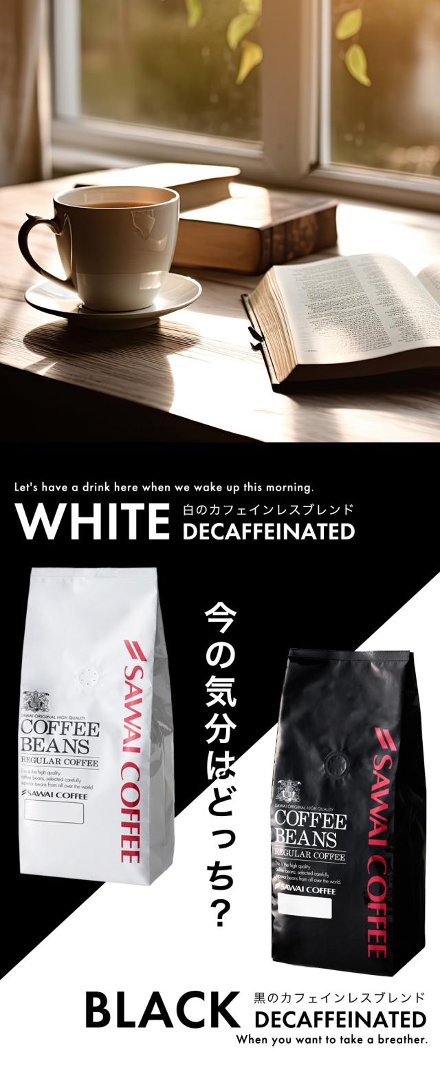 | 産地 | 【白のカフェインレスブレンド】ブラジル、インドネシア他 【黒のカフェインレスブレンド】ブラジル、エチオピア |