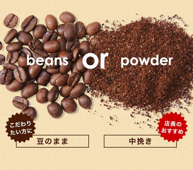 レギュラーなので、珈琲豆でのお届け(豆のまま)と粉の状態でのお届け(中挽き)をご選択いただけます。