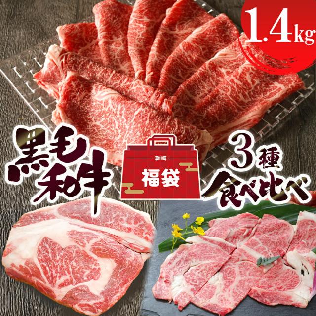 【総重量1.4kg】 黒毛和牛サーロイン ・リブロース 3種食べ比べ福袋【 送料無料 ステーキ 焼肉 スライス 食べ物 厳選黒毛和牛 食べ物 お取り寄せ 詰め合わせ】
