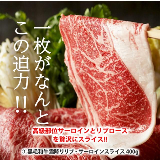 | 内容量 | 黒毛和牛霜降りリブ・サーロインスライス400g 黒毛和牛特選リブロースステーキ400g(200g×2枚) 黒毛和牛ロース焼肉600g(300g×2) |