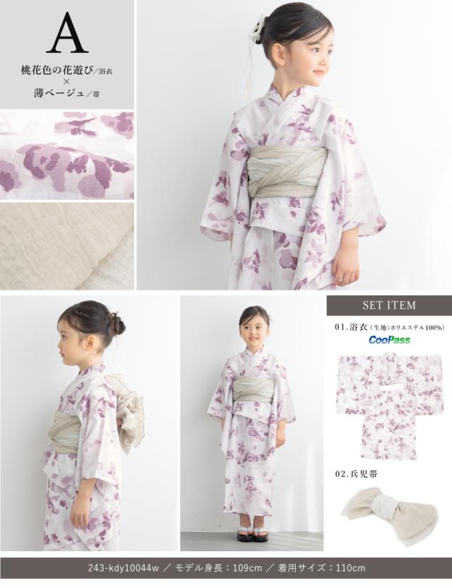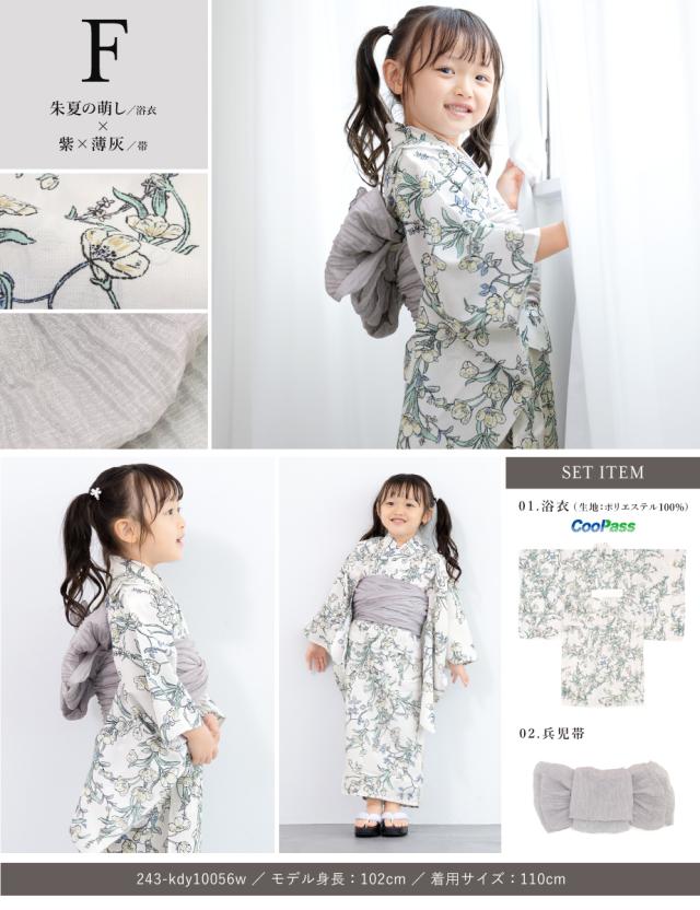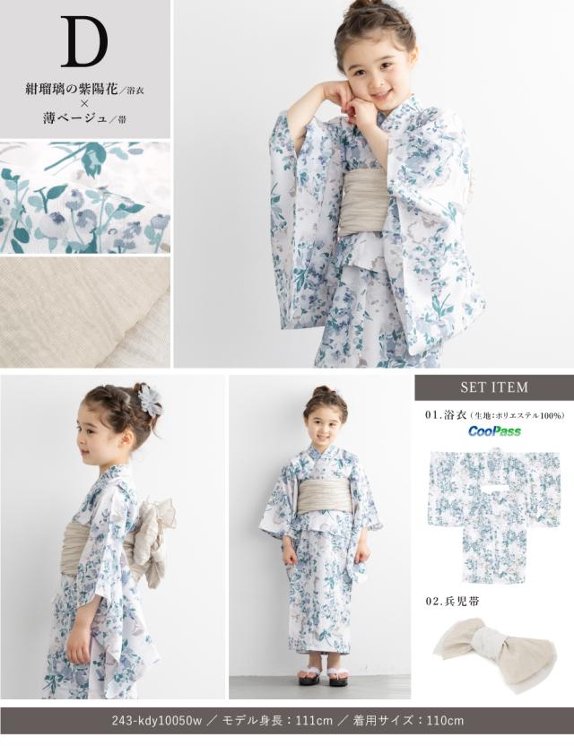 浴衣 子供 女の子 セット キッズ 浴衣セット 兵児帯 2025新作 吸水速乾 2点セット モダン フローロ 花柄 帯 夏 110 120 130 140 送料無料